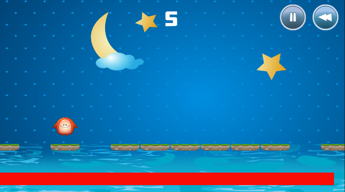| Вы очень милое странное маленькое создание, и вам нужно попасть на другой берег озера! Но вы не умеете летать, поэтому вам нужны прыгать по платформам, которые находятся на поверхности воды. Мало того, что вы не можете летать, плавать вы тоже не умеете. Сделайте все возможное, чтобы заработать как можно больше очков и не упасть в озеро! |