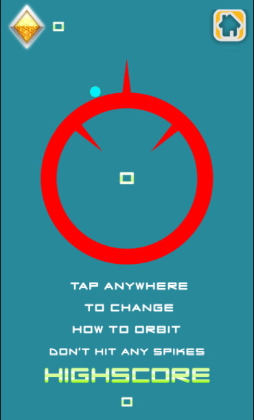 Орбита вокруг круга и увернуться от шипов! Эти пики появляются как внутри, так и вне круга, и вы должны изменить, где вы находитесь на орбите, чтобы уклониться от них. Каждое полное вращение вокруг круга рассматривается как один балл. И не забудьте собрать драгоценные камни, когда вы играете, чтобы разблокировать новых персонажей в магазине!