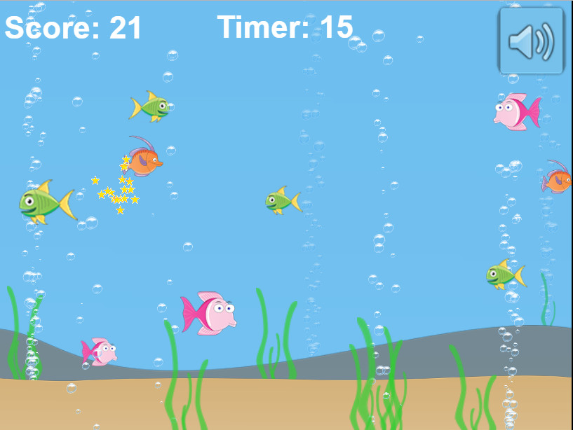 Вы рыбак, который пытается поймать рыбу в океане. В океане очень много рыбы, и чтобы поймать ее, вам нужно просто кликнуть. Имейте ввиду, что время рыбалки ограничено – за 30 секунд вы должны поймать как можно больше рыбы!