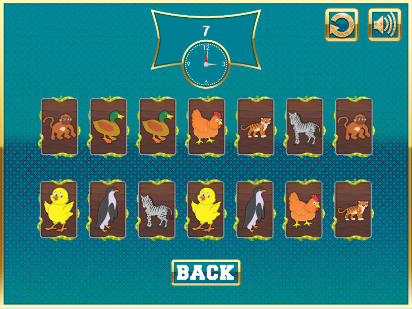 | У вас хорошая память? Давайте проверим! Эта игра может быть очень полезна в обучении маленьких детей и тренировке памяти. Эта игра поддерживает звук, в ней 3 геймплея и в каждом из них 3 уровня сложности - 12, 14 или 16 изображений. Изображения, слова и звуки связаны с животными. Геймплеи в игре следующие – слово-слово, изображение-изображение, изображение-слово. В геймплее слово-слово вам нужно найти карточки с одинаковыми словами, в геймплее изображение-изображение, вам нужно найти карточки с одинаковыми изображениями, соответственно в геймплее изображение-слово вам надо сопоставить карточку с изображением с его названием. Когда вы выбираете карточку, вы слышите название животного на английском языке. Таким образом, эту игру можно использовать в образовательных целях. |