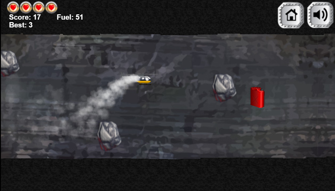 | Вы летите через пещеру на вертолете, на вашем пути встречается множество препятствий. Ваша задача состоит в том, чтобы уклониться от этих препятствий. Звучит знакомо? Да, это та самая игра из детства только улучшенная версия! Как и в старой игре, вертолет стремится вниз, а вам нужно удерживать кнопку мышки, чтобы он не упал. Но не забывайте о топливе! Ваше топливо ограничено, собирайте его на своем пути, иначе проиграете. Загрузите игру и узнайте, насколько хорошо вы умеете управлять вертолетом! |