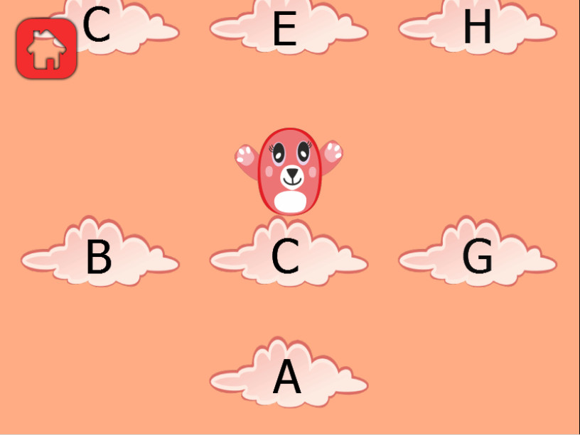| В этой игре мы использовали жанр подобный «Doodle Jump» для обучения английскому алфавиту детей от 3 до 6 лет. Мы использовали метод, при котором дети могут ознакомиться с написанием букв, с их произношением, и правильным порядком в алфавите. Сюжет игры следующий: главный герой хочет добраться до солнца, и есть только один способ сделать это! Он должен прыгать по облаках с буквами в порядке, в котором они располагаются в английском алфавите! Если он прыгнет на неверное облако (не ту букву), он упадет, но не потеряет жизнь, он может снова прыгать по облакам, и выиграет, когда доберется до солнца! |