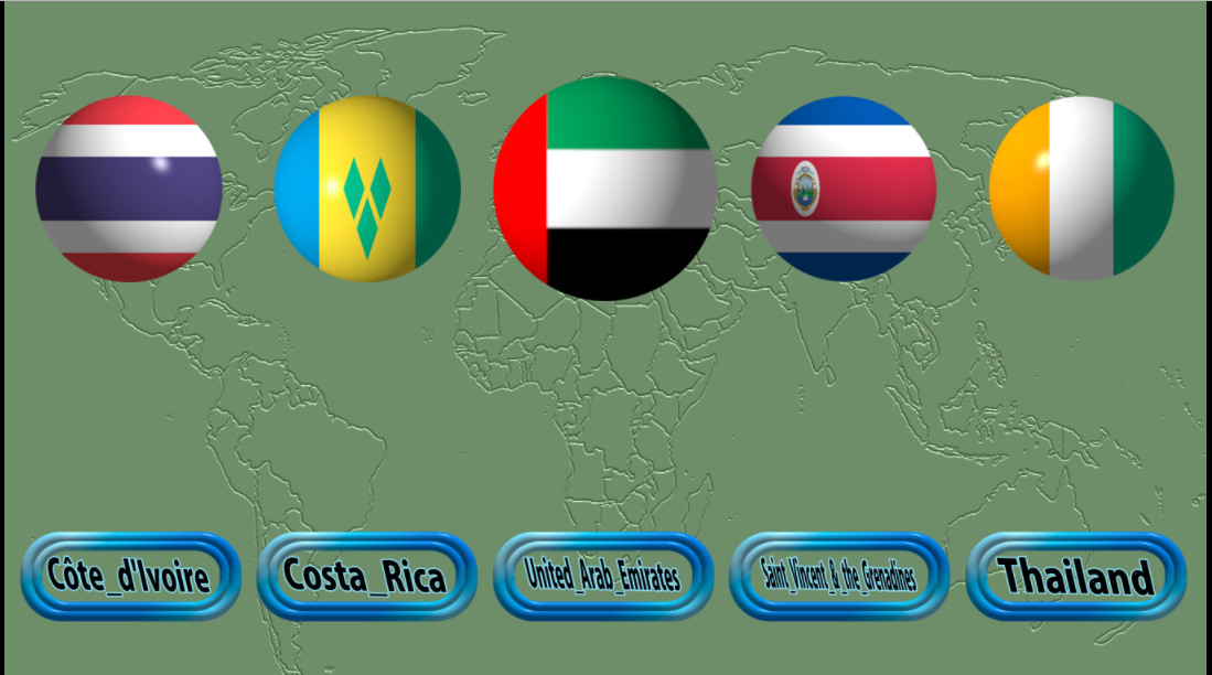 | Это обучающая игра для детей, с ее помощью можно выучить названия стран на английском и их флаги. Когда вы нажимаете на флаг, вы услышите название страны, и затем вам нужно будет выбрать название этой страны из списка внизу. Если вы выберет правильно, то флаг исчезнет. На каждой странице по 5 флагов и 5 стран, как только вы все выполните, вы перейдете на следующий уровень, количество уровней в игре неограниченно. В этой игре используются флаги 191 страны, входящих в Организацию Объединенных Наций. |