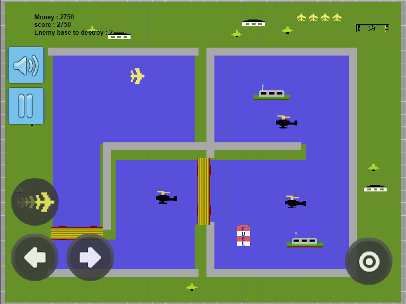| Много взрослых геймеров испытывают ностальгические чувства по поводу игр, в которые они играли в детстве. Одна из таких игр детства - знаменитая игра про самолеты, в которой вам нужно было стрелять во врагов и собирать топливо по дороге. Это была одна из лучших игр на консоли! Наша игра была разработана на основе этой популярной игры. Вы управляете самолетом, и ваша цель - уничтожить всех врагов и их базы на каждом уровне. В игре 8 уровней и уровень Босса. Также не забудьте собирать топливо, иначе вы проиграете! |