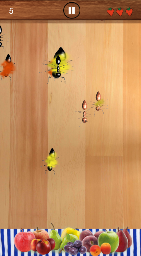Если вам не нравятся насекомые, то эта игра для вас. В данном приложении вы должны защищать фрукты от муравьёв и жуков, но опасайтесь шмелей, иначе рискуете потерять здоровье. За каждого убитого врага в игре даются очки.
