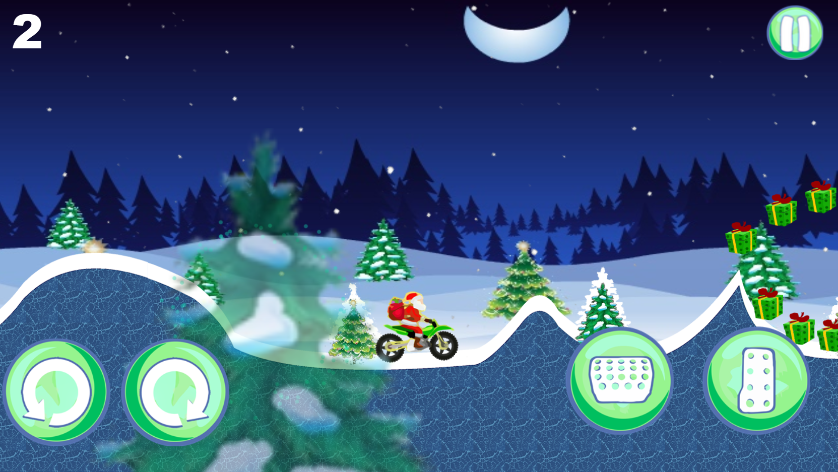 Приближается Новый год, куча детишек ждут своих подарков! В эту ночь вы выступает в роли Санты. Сядьте на мотобайк и доставьте все подарки до начала Нового года. Приятное управление и не малое количество уровней не даст вам заскучать.