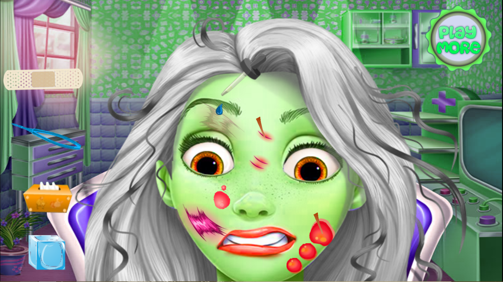 Принцесса стала зомби! Но вы все равно должны вылечить ее руки от ссадин и порезов. Используйте левую кнопку мыши и передвигайте её, чтобы управлять приборами. Подсказки помогут вам разобраться, что нужно делать с тем или иным инструментом. Спасите зомби от страданий!