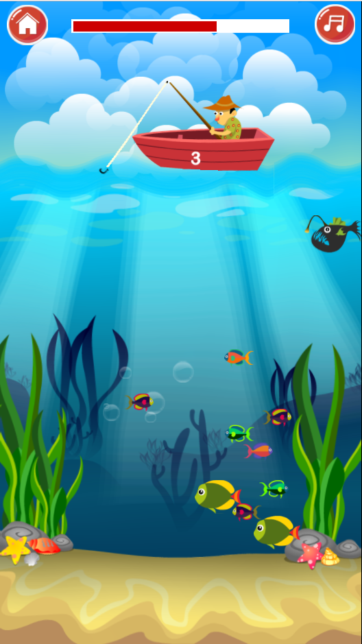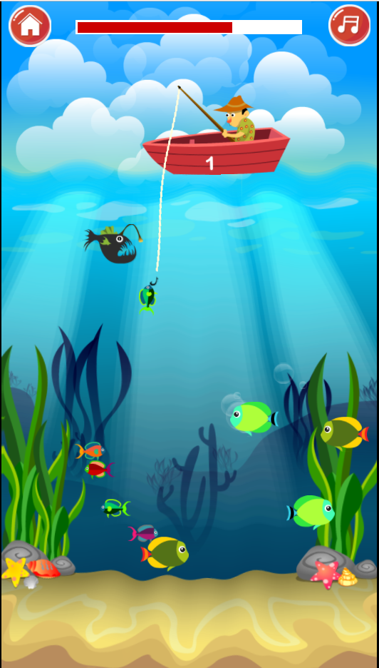 Вы должны с помощью нажатия кнопки мыши закинуть крючок и поймать рыбу. Но опасайтесь чёрных страшных рыб, они будут мешать вам поймать улов и будут есть его. Поймайте как можно больше рыб за отведённое время и проведите хорошо время!