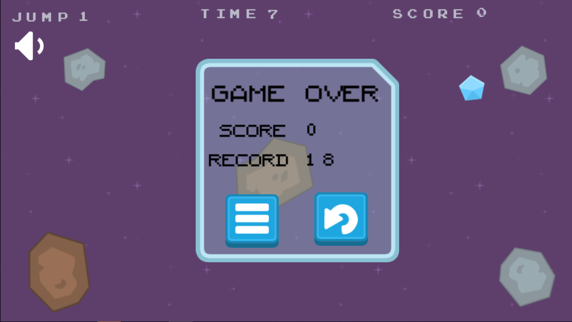 | Вам никогда не хотелось побывать в космосе? Если да, то вам обязательно понравится! Интересная игра, про то как веселый инопланетянин прыгает от одного метеорита на другой, попутно собирая драгоценные камни по пути. отличное звуковое сопровождение и приятная графика-это все что вас ждет в Alien Jump. Сможете ли продержаться дольше 5 минут? Попробуйте и вас обязательно затянет эта увлекательная игра!" |